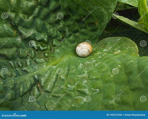 Snail shell on wet leaves stock image. Image of drops 32342293 from www.dreamstime.com